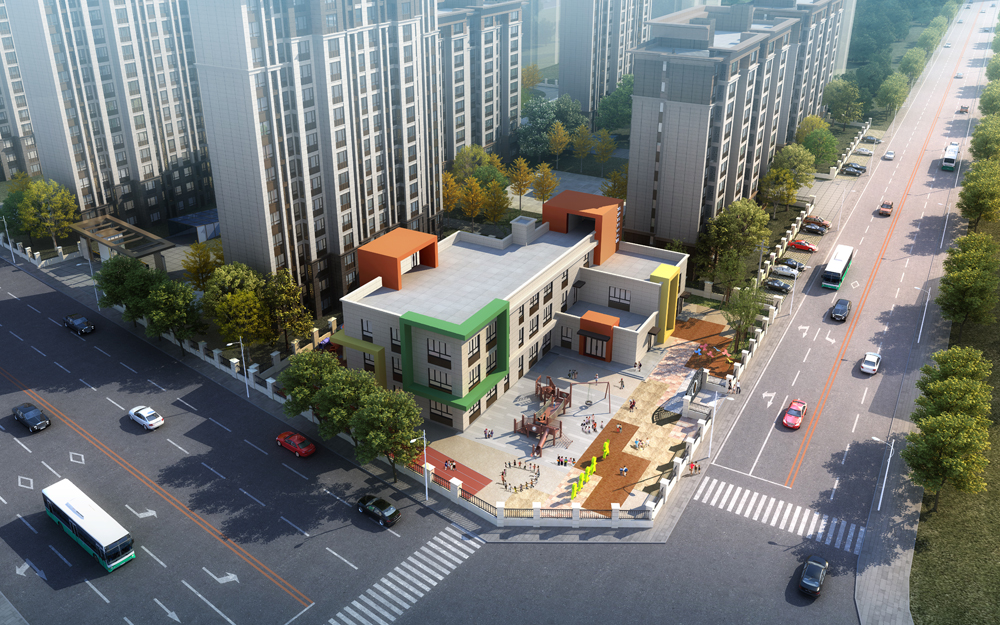 • 效果圖沿街幼兒園18層南面